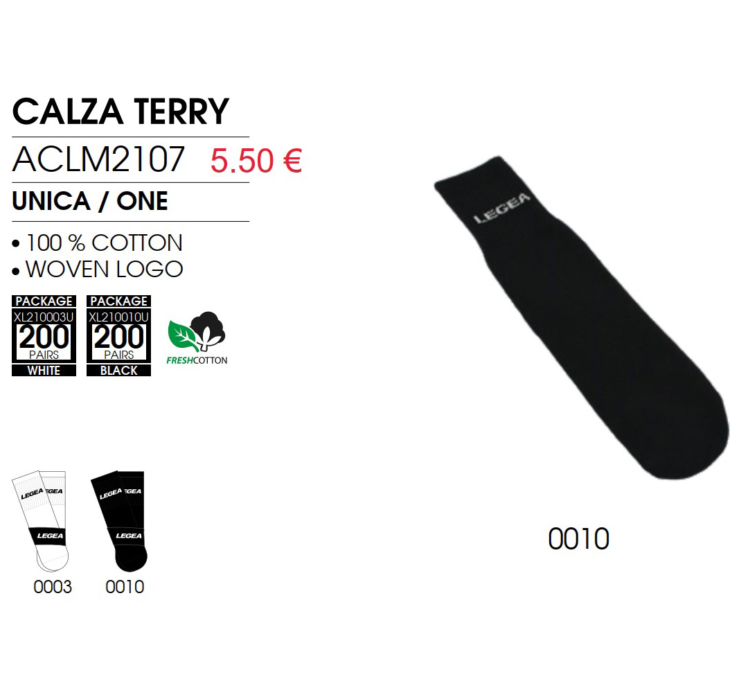 Κάλτσες προπόνησης από την Legea από 100% βαμβάκι μέχρι το ύψος της γάμπας.